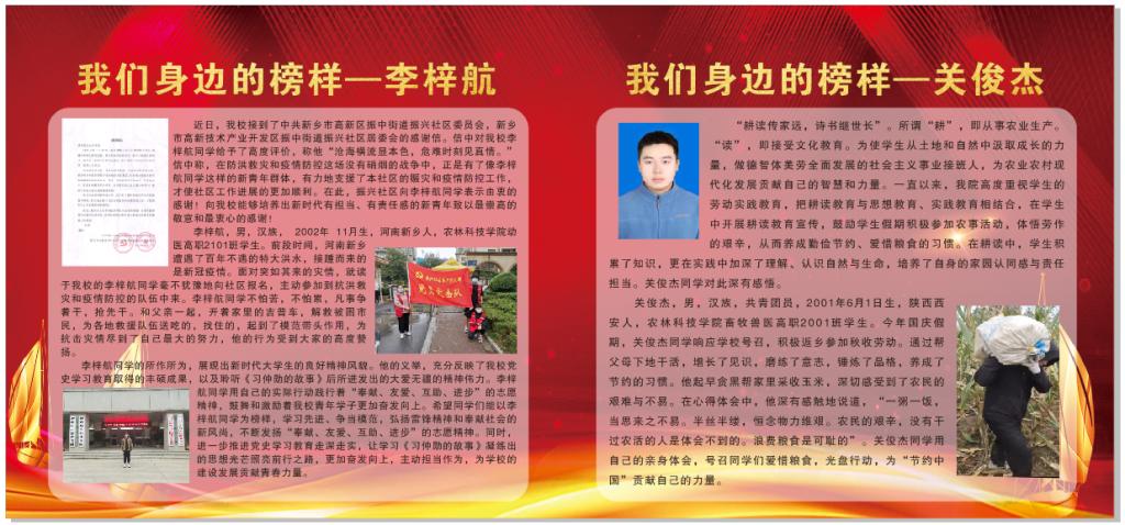 榜样就在身边。为表彰先进,营造浓厚学习氛围,使“青春榜样”“身边榜样”李梓航同学的先进事迹激励、鼓舞、感染更多的人加入到志愿服务中来,进而带动和促进全院精神文明建设,办公室将李梓航同学的先进事迹进行了整理,制作了宣传展板在公司一楼大厅展出。
