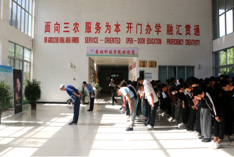 最后,全体师生面向袁老遗像三鞠躬,深深地表达了对袁老先生的敬意和怀念。