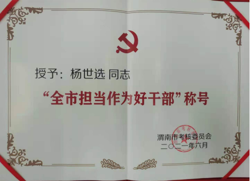 6月8日,在渭南市2020年度目标责任考核总结表彰会议上,gg999策略手机白菜经理杨世选,受到渭南市考核委员会表彰,荣获“全市担当作为好干部”称号。