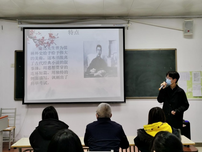 主持人高天宇和赵怡曼对分享会评分规则做了简单介绍后,宣布活动开始。同学们分享的书籍内容丰富,题材多样,给人深刻的印象和启迪。李俞涵同学的《哈利波特》带我们走进书中的魔幻世界;雷海同学分享的《西游记》书中精彩的故事情节告诉我们,要想成功,就得不怕吃苦、不怕难、持之以恒;刘佳鑫同学分享的《鲁宾逊漂流记》告诉我们,即使在面对绝境的时候,也要寻找对自己有利的一面,要保持着积极向上的心态,勇敢的迎战人生的苦难;孙欣贝同学通过《月亮与六便士》告诉我们“每个人在世都是孤独的”,你是独立的个体,你要知道自己想要的是什么,做什么才能让生活更有意义,去追逐自己的内心那个温柔又明晃晃的月亮吧,短暂的一生要尽量有趣的活着,愿我们都能做自己;武欣妍同学分享的《云边有个小卖部》、焦杰华同学分享了《儒林外史》的精彩篇章……同学们声情并茂,娓娓道来,引人入胜,给人启迪。