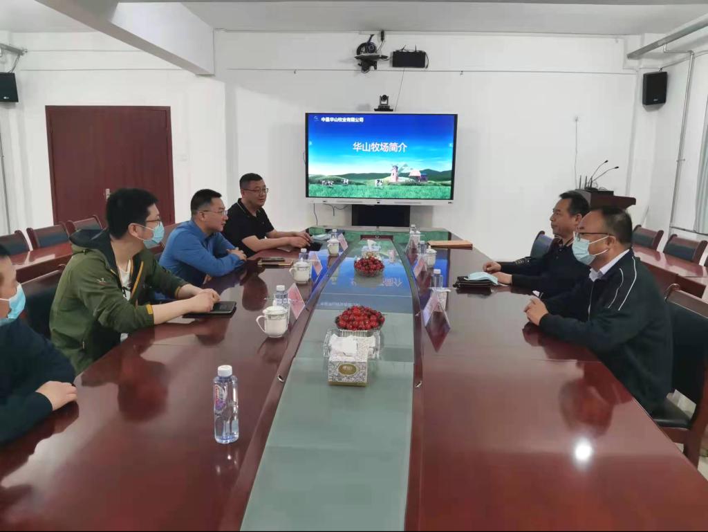 中垦华山牧业有限公司总经理邓清涛对杨经理一行的到来表示欢迎,办公室主任蔚楠就公司基本概况做了详细介绍。杨经理介绍了公司的办学历史、办学规模、办学特色等基本情况。随后,双方就人才共育机制、员工实习就业和教科研合作等方面进行了交流探讨。