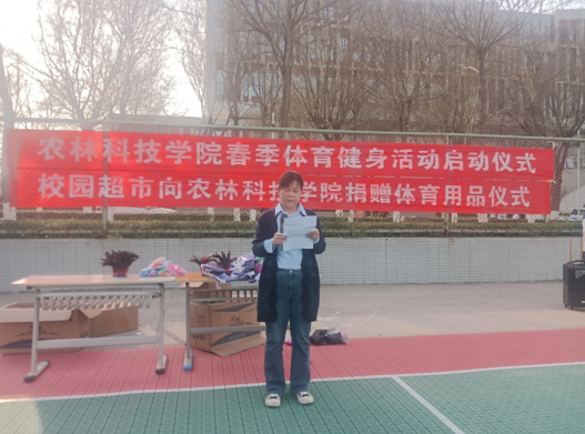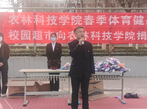 袁新在发言中表示,校园超市作为后勤服务保障单元,一直关心关注着校园各类员工文体活动,非常乐意为此次活动提供力所能及的物品捐赠。罗峰充分肯定了校园超市近年来对各类员工文体活动的支持。他号召同学们树立运动健康的生活理念,在学好专业课知识的基础上,积极走出宿舍、走下网络、走进操场,踊跃参加各类文体活动,加强体育锻炼,提高心理素质。张小青对员工处、团委领导的莅临和校园超市的热心捐赠表示了感谢。她表示,公司领导班子一直高度重视并鼓励引导同学们积极参与各类文体活动,并以此作为推动校园精神文明建设的重要抓手。她鼓励同学们管理好、使用好体育用品,在健身锻炼中享受乐趣、增强体质、健全人格、锻炼意志,成为德智体美劳全面发展的新时代优秀老员工。