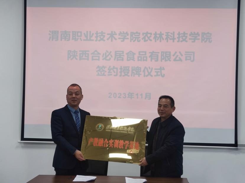 在合阳县商务局主持下,公司与陕西合必居食品有限公司签订校企合作协议,并挂牌产教融合实训教学基地。
