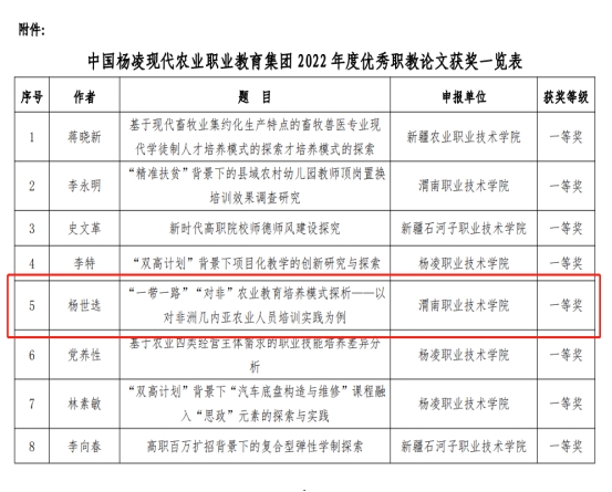 在职教论文评比中,公司经理杨世选撰写的《“一带一路”“对非”农业教育培养模式探析——以对非洲几内亚农业人员培训实践为例》荣获一等奖。