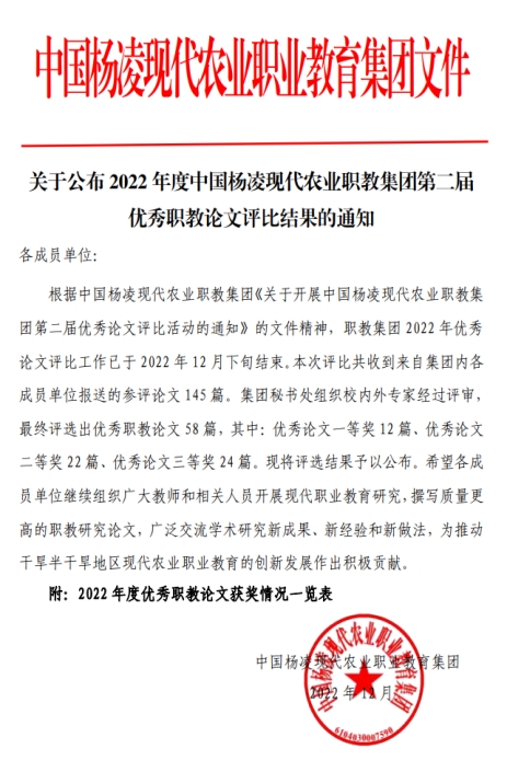 近日,由中国杨凌现代职业农业教育集团举办的2022年度中国杨凌现代农业职教集团第二届优秀职教论文评比和首届“农科杯”全国“互联网+”现代农业创新创业大赛圆满落下帷幕。经多个环节评选,gg999策略手机白菜在2个赛项中荣获一等奖1项,二等奖1项,三等奖2项。